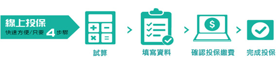 - 線上填寫資料時,請依據被保險人個人資料及工作內容填寫正確,完成付款;保單將依客戶預定的生效日期生效。